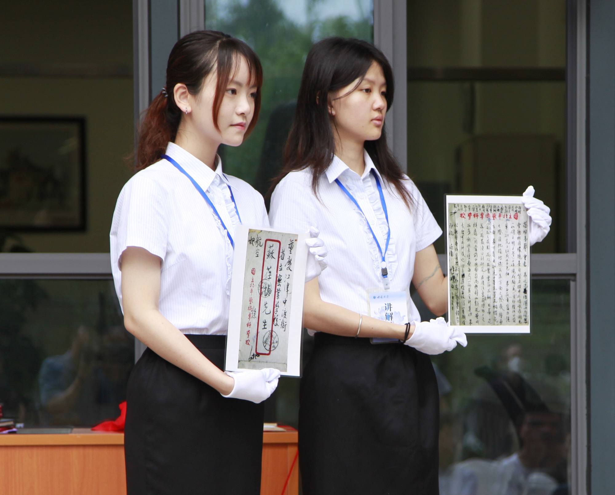 近日,学校档案馆还收到部分教师和社会人士捐赠的国立编译馆聘书、聘约等民国文献,中国农大前身的国立京师学堂农科首届学生纪念册、著名画家徐悲鸿写给曾是其学生的苏葆桢的信函(复制件)、苏葆桢写给友人的信函(复制件),以及工程技术学院毕业生捐赠的“记忆杂货铺”18本日记和近万张留言卡片“青春档案”等。仪式现场,档案馆领导向部分捐赠者或其代表人颁发捐赠证书。