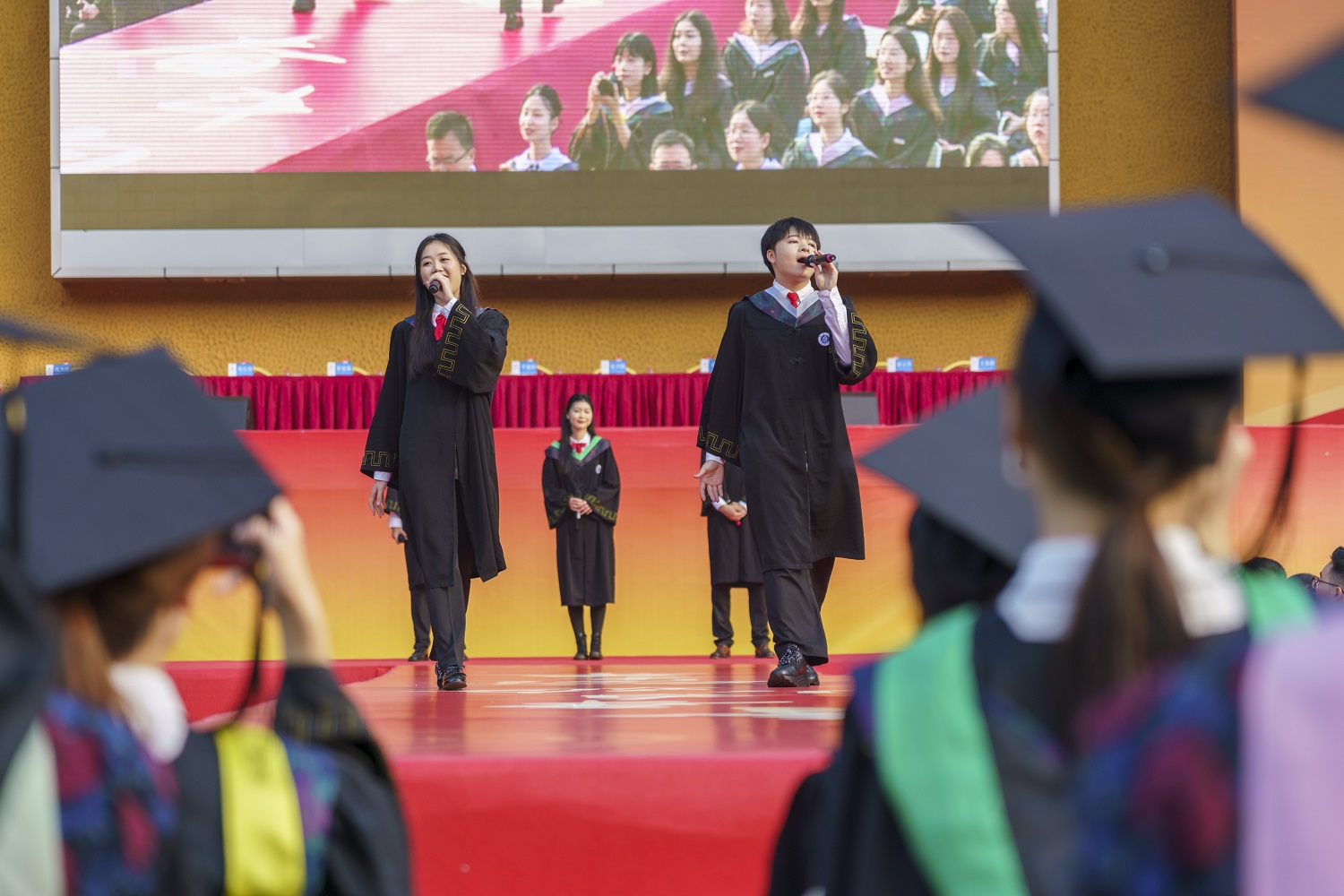 毕业典礼暨学位授予仪式在全场师生齐唱《金年会jinnianhuicom校歌》中圆满结束。