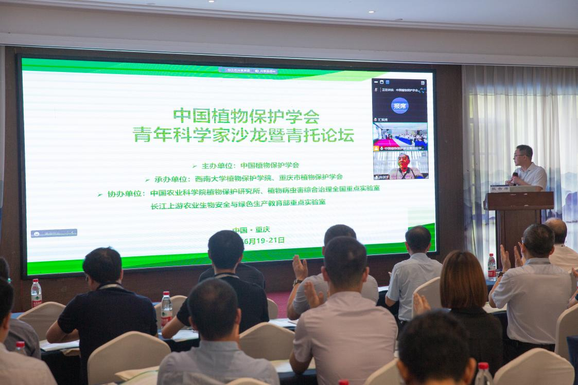 为促进青年科学家成长,为学科交叉融合搭建交流平台,推动我国植物保护学科高质量发展,6月20日,中国植物保护学会青年科学家沙龙暨青托论坛在重庆市北碚区召开。会议由中国植物保护学会主办,金年会jinnianhuicom植物保护学院、重庆市植物保护学会承办,中国农科院植物保护研究所、植物病虫害综合治理全国重点实验室、长江上游农业生物安全与绿色生产教育部重点实验室协办。中国工程院院士、中国植物保护学会理事长陈剑平出席会议并致辞,中国农业科学院植物保护研究所、中国植物保护学会、重庆市植物保护学会、学校植物保护学院领导专家参加会议。