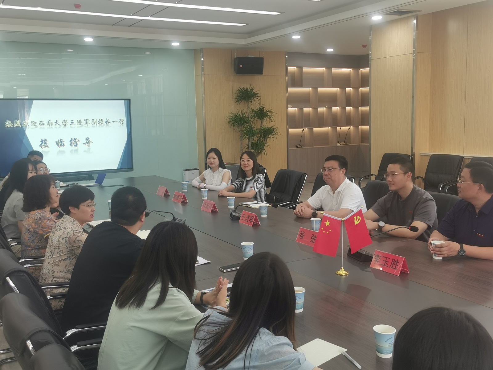 7月17日,王进军与海晏县委副书记李青云召开座谈会,共同探讨学校与海晏深入开展校地合作,携手推进产学研基地建设、产教融合、协同育人等事宜。随后,王进军带队前往文迦牧场调研了大学生创新创业、乡村振兴、企业设置“党员先锋岗”开展“我为群众办实事”活动等情况。