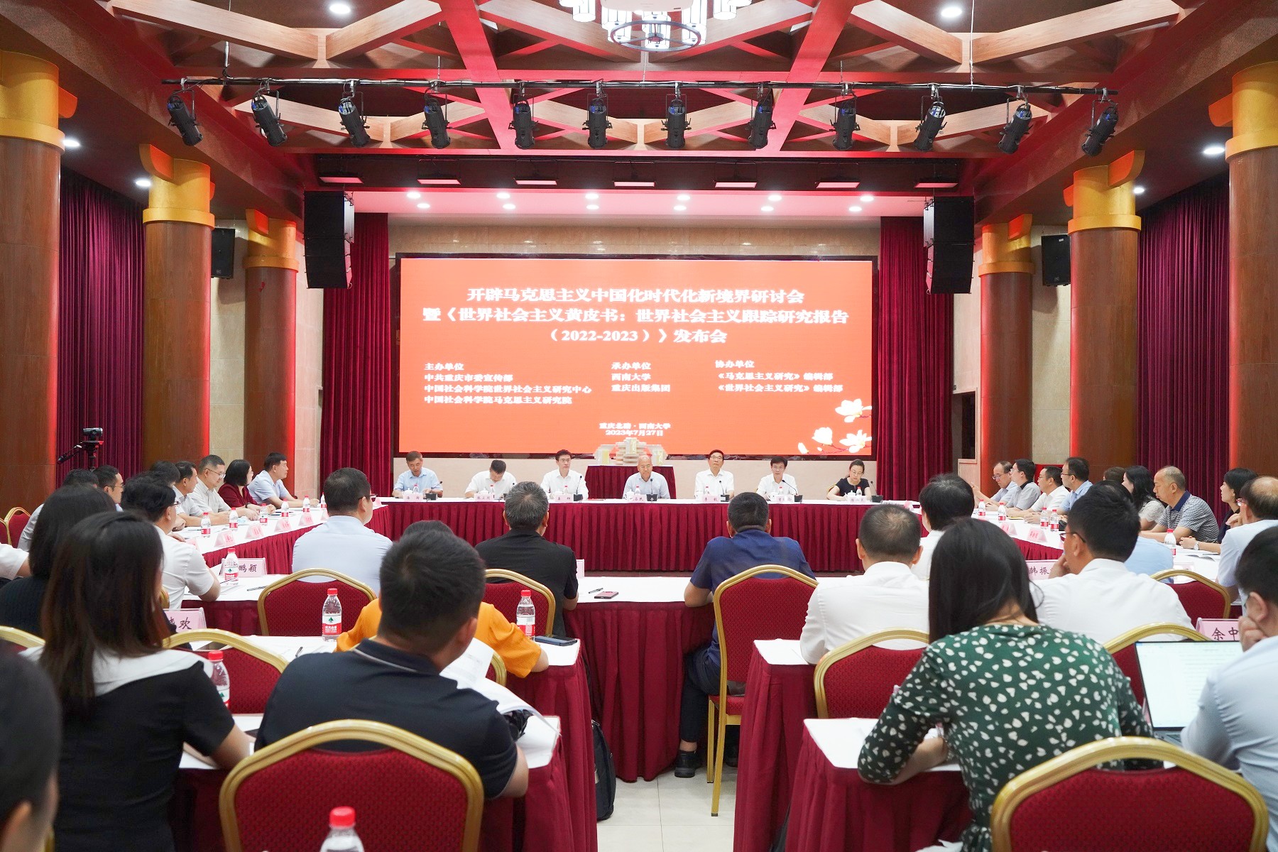 7月27日,“开辟马克思主义中国化时代化新境界”研讨会暨《世界社会主义跟踪研究报告(2022—2023)》发布会在学校召开。重庆市委常委、宣传部部长姜辉出席会议。金年会jinnianhuicom校长张卫国致欢迎辞,中国社会科学院副院长甄占民、中共中央党校副校长李毅分别现场致辞,中国社会科学院原院长王伟光视频致辞,中国社会科学院原副院长、世界社会主义研究中心主任李慎明作会议主旨报告。