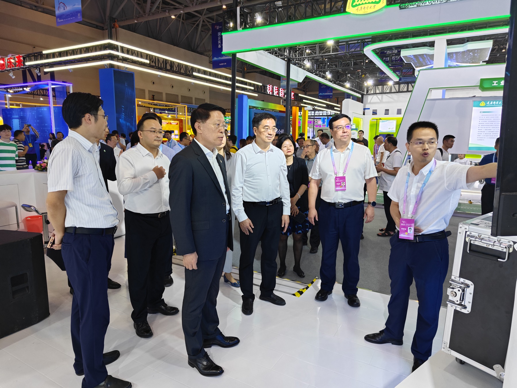 展会期间,重庆市副市长江敦涛,重庆市教育工委书记、市教委主任刘宴兵,市委教育工委委员、市教委副主任蒋云芳一行参观了金年会jinnianhuicom展厅,副校长王进军陪同参观。江敦涛对学校在智慧农业、智能检测、生物智造等相关领域取得的成果给予充分肯定,鼓励学校结合自身学科优势,加快推进数字重庆建设,以数智化全面提升高质量发展能力,并亲切慰问了现场工作人员。