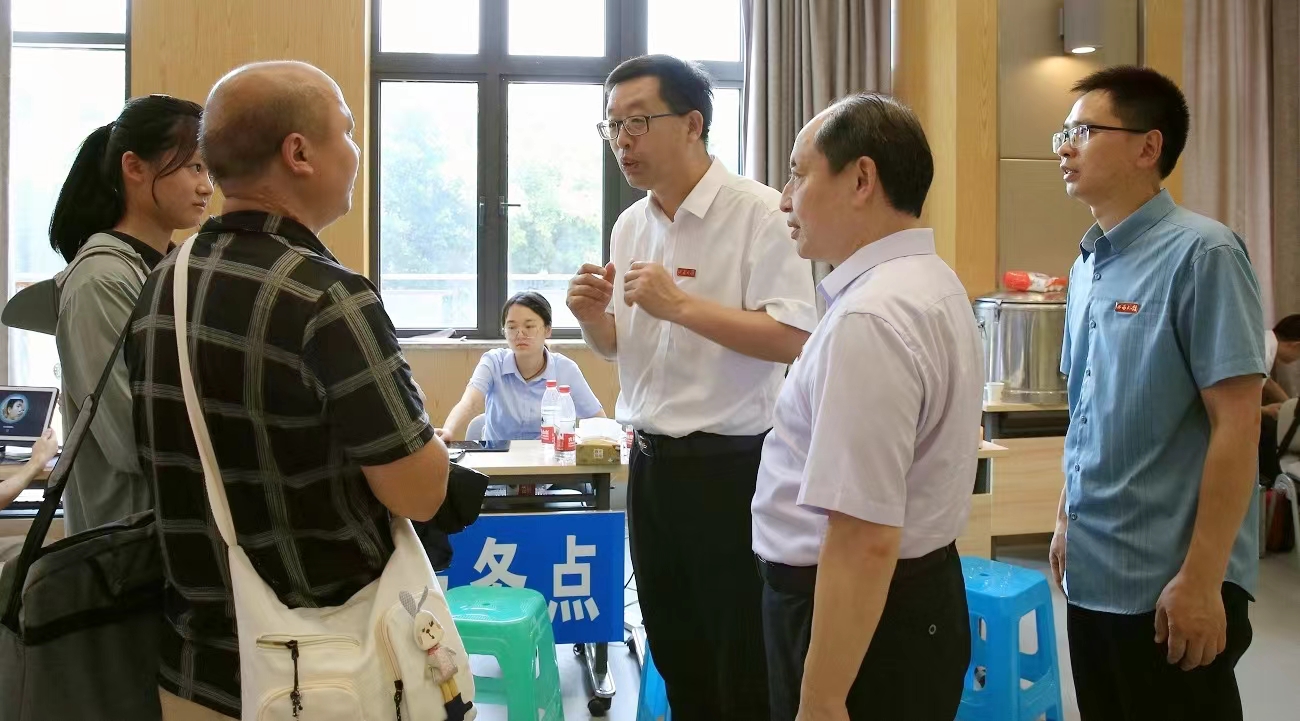 在荣昌校区2023级新生报到集中接待点,赵国华先后到商贸学院、动物科学技术学院、动物医学院、水产学院集中报到处和财务服务点、后勤服务点、医疗服务点,关心和了解报到人数、迎新流程、宿舍安排、后勤保障等相关情况,看望2023级新生和家长,慰问坚守在迎新一线的工作人员和志愿者们。赵国华同新生及家长亲切交谈,询问新同学初入校园的感受,听取家长的意见和建议,对同学们的到来表示热烈欢迎,祝愿新生在西大开启充实而有意义的学习生活之旅。他强调,全校要统一思想,统一行动,充分发挥荣昌校区党工委、管委会统筹协调功能,按照一体化要求推进落实各项管理服务工作,为学校教育教学和人才培养提供坚实支撑。