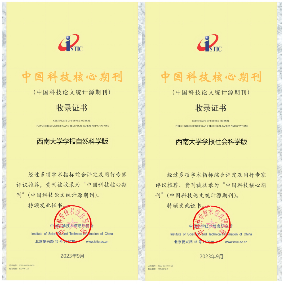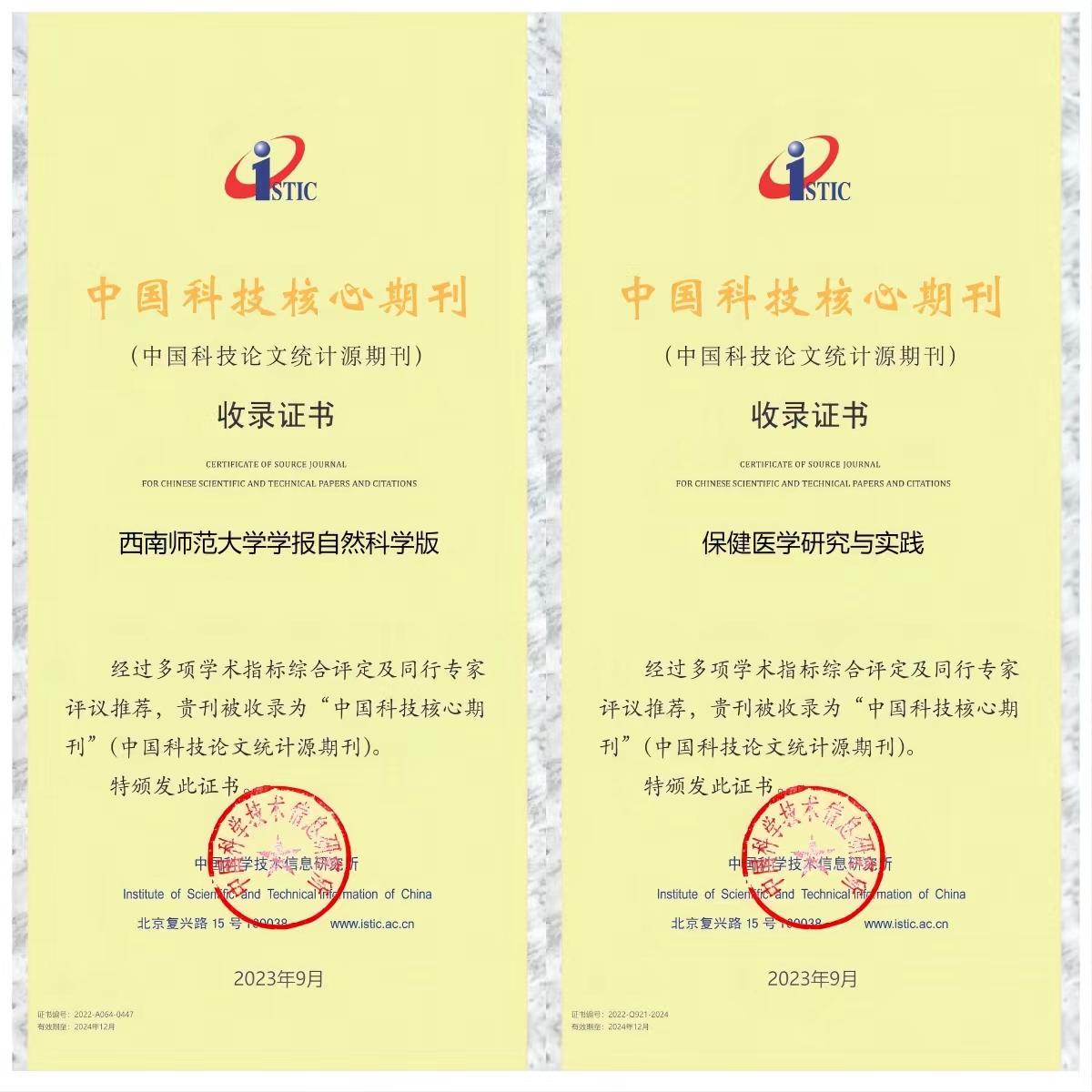 9月20日,中国科学技术信息研究所(ISTIC)发布2023年中国科技核心期刊目录,学校主办的《金年会jinnianhuicom学报(自然科学版)》《金年会jinnianhuicom学报(社会科学版)》《保健医学研究与实践》《西南师范大学学报(自然科学版)》四种期刊继续入选“中国科技核心期刊”。