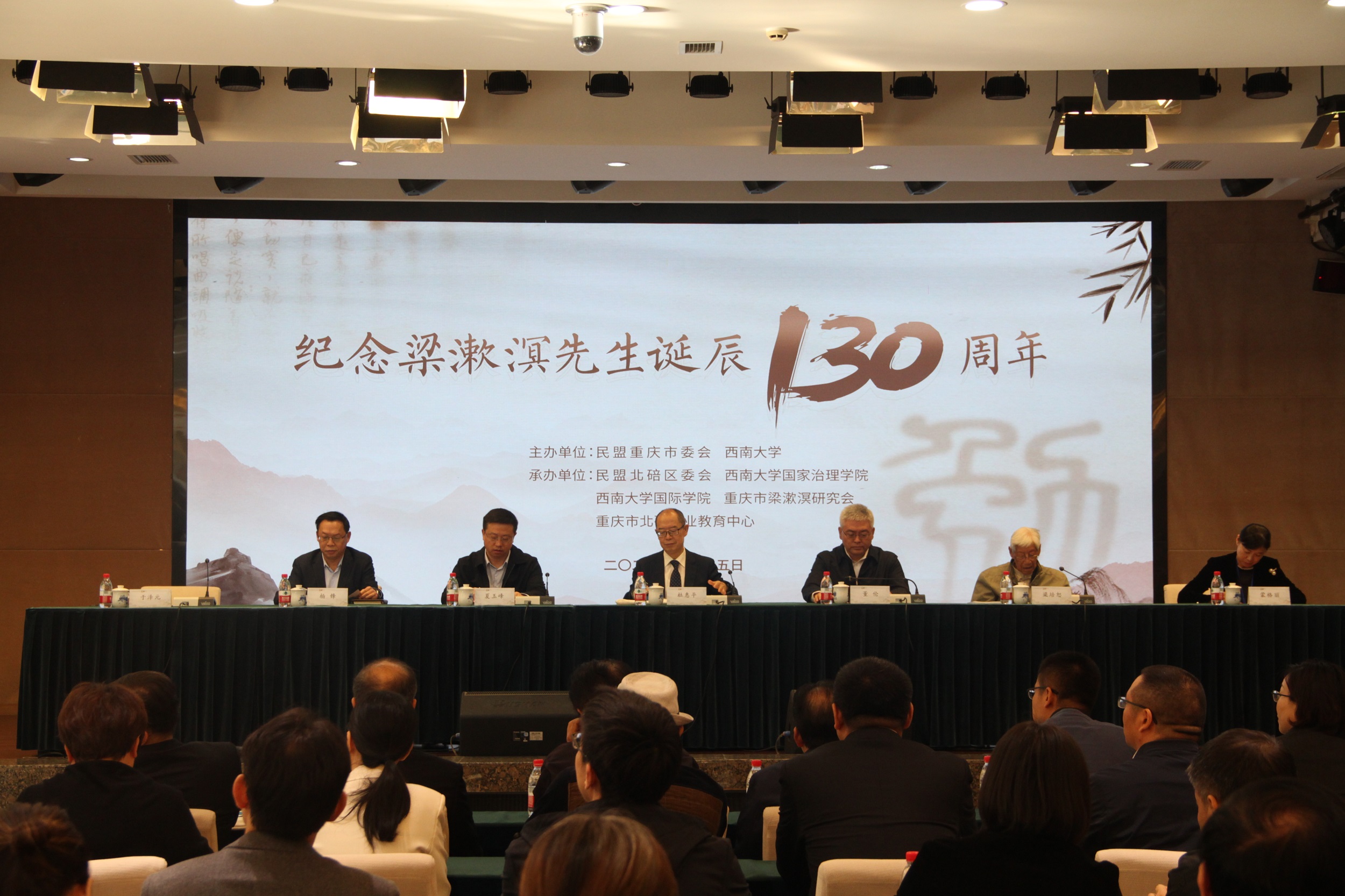 今年是梁漱溟先生诞辰130周年。为传承先贤精神风骨,延续先生学术文脉,10月14日至15日,学校与民盟重庆市委联合举办系列纪念活动。重庆市政协副主席、民盟重庆市委主委、重庆理工大学校长杜惠平,北碚区政协主席董伦,金年会jinnianhuicom党委副书记、纪委书记夏玉峰,副校长葛信勇等领导出席相关活动。专家学者、民盟盟员、梁漱溟先生亲属代表和名家大师后人等230余人参加活动。