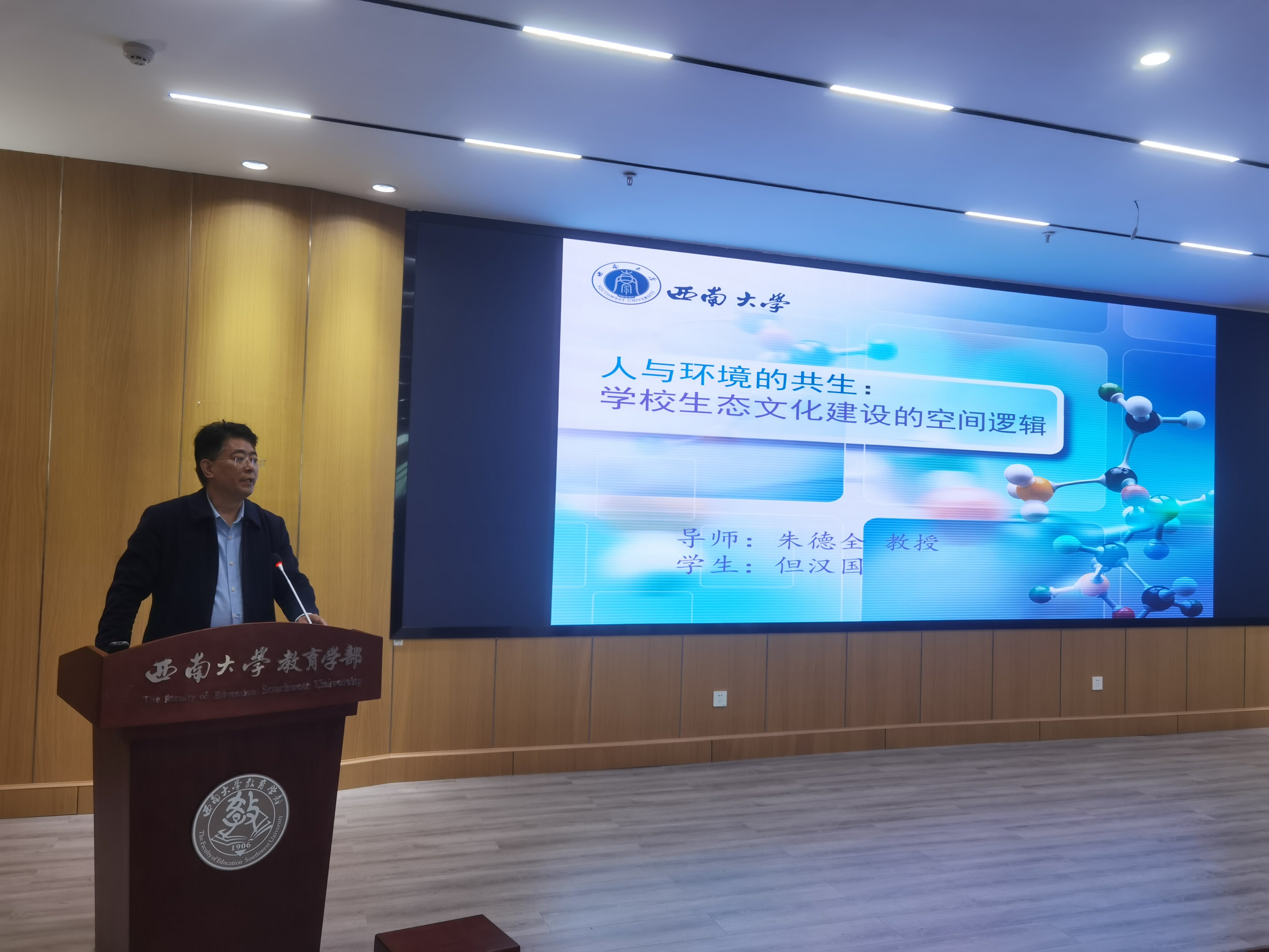 论坛最后,由教育学部部长朱德全教授对本次论坛进行点评、总结,朱德全部长在点评中指出通过论坛发现大家存在的四方面问题,做了三方面提醒,并对教育博士下一步的学习给出四点具体建议。朱部长建议大家:一是大量读书,读出观点,读出新意,形成自己的见解;二是认真倾听导师意见,同学间交流互鉴,以欣赏的态度看待他人的进步并从中获得启示;三是积极在不同场合大胆演讲,迸发思想,明晰逻辑;四是重视写作训练,高定位高水准写好小论文,期待大家持之以恒地发扬学习精神、保持学术热情、不断推出创造性学术成果。