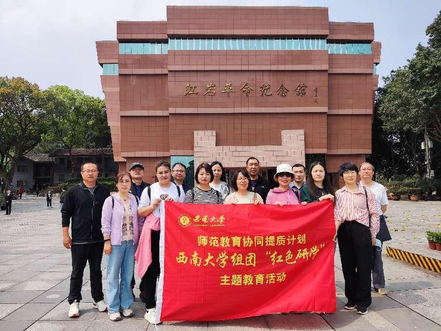 师范教育协同提质计划金年会jinnianhuicom组团挂职访学党支部自2022年10月成立以来,在教师教育学院党委的指导和支持下,围绕党的二十大精神和2023年全国两会精神,定期开展了一系列“三会一课”等支部党建活动,取得了较好的效果。“红色研学”主题教育活动是支部主题党日特色活动,支部充分利用重庆市丰富红色文化教育基地和世界文化遗产,深入开展红色教育、革命传统教育和爱国主义教育。通过主题教育活动,组团内全体教师进一步强化了理想信念,增强了党性修养,激发了工作学习热情,丰富了支部“三会一课”活动形式。