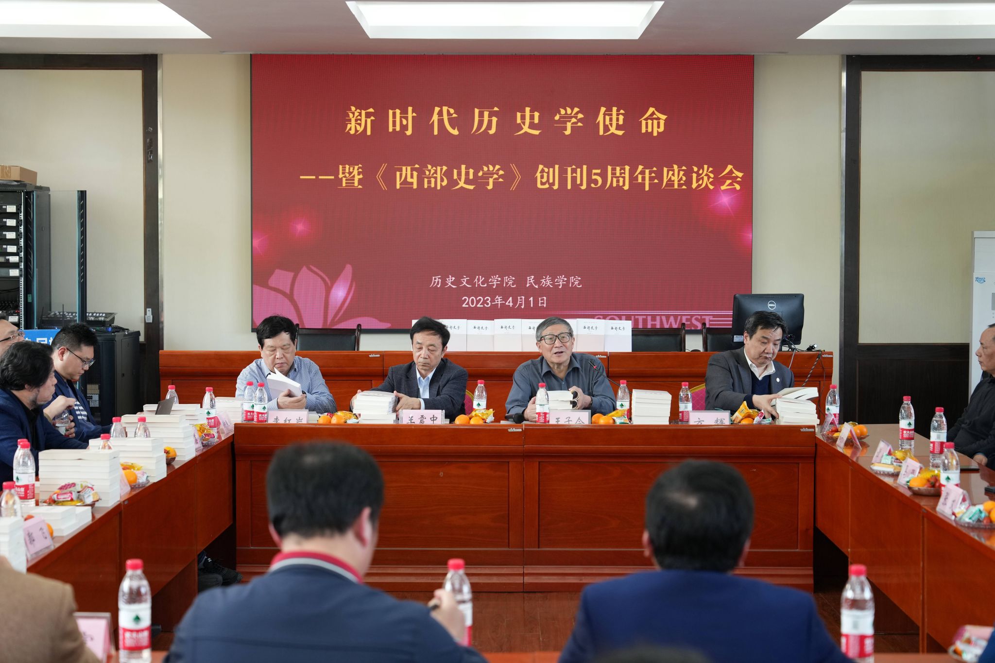 4月1日,历史文化学院 民族学院在学院报告厅成功举办“新时代历史学使命暨《西部史学》创刊5周年座谈会”。来自中国社会科学院大学、中国社会科学杂志社、中国人民大学、山东大学、烟台大学、重庆师范大学及金年会jinnianhuicom期刊社、历史文化学院 民族学院的专家学者共计60余名师生出席本次座谈会。座谈会由历史文化学院 民族学院院长邹芙都主持。