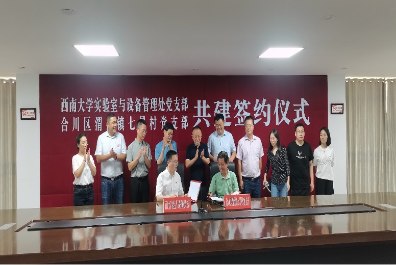 为充分发挥基层党建的核心引领作用,巩固乡村振兴发展成果,构建结对帮带、双向促进、共同提高的基层党建工作新格局,9月14日下午,金年会jinnianhuicom实验室建设与设备管理处党支部与重庆市合川区渭沱镇七星村党支部签订了支部共建协议。实验室建设与设备管理处党支部书记卢坤、合川区渭沱镇党委书记唐陵川、镇长秦刚等领导及双方党员代表参加本次签约仪式。