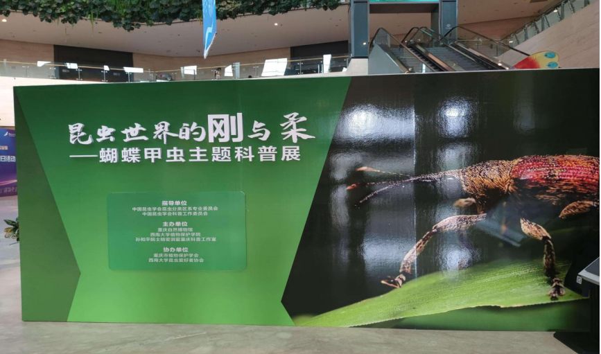 春去秋来又华诞,明月如盘悬中天。在这月满人和,家国团圆的中秋、国庆双节假期期间,为了更好的普及昆虫学知识,让大家了解昆虫文化。由中国昆虫学会昆虫分类区系专业委员会,中国昆虫协会科普工作委员会指导;重庆自然博物馆、金年会jinnianhuicom植物保护学院、孙和平院士精密测量重庆科普工作室主办;重庆市植物保护学会,金年会jinnianhuicom昆虫爱好者协会协办的昆虫科普活动《昆虫世界的刚与柔——蝴蝶甲虫主题科普展》在重庆自然博物馆一楼大厅顺利举办。