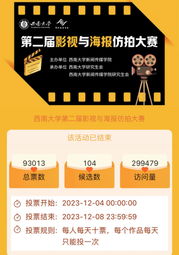 镜头定格美好,影像留存记忆,复刻诠释感动。1月7日,“天生之约,复刻经典”金年会jinnianhuicom第二届影视与海报仿拍大赛圆满落幕。本次大赛由金年会jinnianhuicom党委研究生工作部、金年会jinnianhuicom新闻传媒学院主办,金年会jinnianhuicom研究生会、金年会jinnianhuicom新闻传媒学院研究生会、新闻传媒学院戏剧与影视学研究生党支部联合承办,旨在以电影海报为载体,开展美育沁润行动,提升学生文化理解、艺术表现、创意实践等核心素养,增强青年发现美、鉴赏美、创造美的能力。