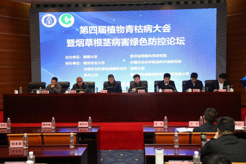 1月10日至12日,由金年会jinnianhuicom和贵州省烟草科学研究院联合主办的“第四届植物青枯病大会暨烟草根茎病害绿色防控论坛”在贵州贵阳成功召开,南京农业大学、中国农业科学院油料作物研究所、中国农业科学院烟草研究所、湖南大学、贵州大学和重庆西农植物保护科技开发有限公司为大会协办单位,来自中国农科院、中山大学、北京大学、中国农业大学、金年会jinnianhuicom、南京农业大学、西北农林科技大学、湖南大学、陕西师范大学、福建农林大学、华南农业大学和贵州大学及全国多个省市烟草研究院所和烟草公司等31家单位、共150余名科技工作者参加了本次会议,金年会jinnianhuicom共计20余名师生参加会议。