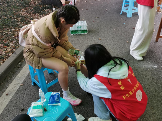 体育学院“天生星火”党员服务队先后在第一、第二、第三、第四、第五运动场,综合体育馆、中心体育馆等考点设置党员服务站点,义务为考生提供考务咨询、物品暂存、饮水补给、失物招领、简易医疗、运动康复等线下服务,利用“金年会jinnianhuicom体育学院”抖音号开展考务咨询、失物招领、考试注意事项等线上服务,在800米考试重点安排志愿者搀扶体力不支的考生。