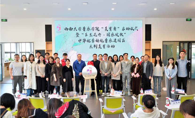 春光作序,万物和鸣。在这个春回大地,万物复苏的美好时节,为全面贯彻落实党的教育方针,落实立德树人根本任务,弘扬中华美育精神,坚定文化自信,实现美育浸润学生,培养德智体美劳全面发展的社会主义建设者和接班人,音乐学院在学校相关部门的指导和帮助下,联动第一二课堂,经过一年的筹备,于3月28日下午在学校青李空间正式启动成立音乐学院“美育角”,并举办“玉兰花开·国乐绽放”中华优秀传统音乐进园区系列美育活动。