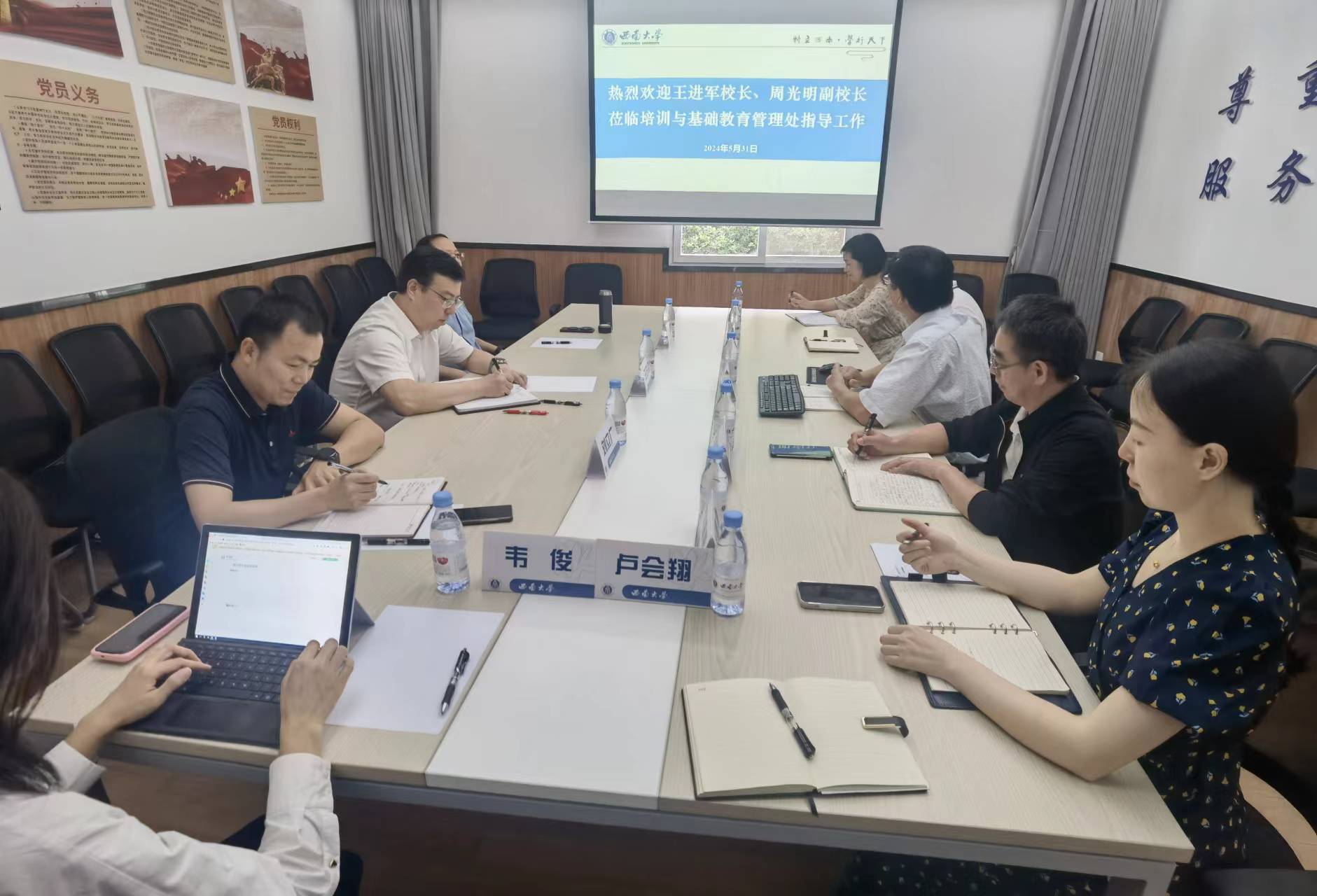 5月31日上午,校长王进军深入培训与基础教育管理处调研指导学校基础教育合作办学与非学历教育工作,副校长周光明,党政办公室副主任刘立广、信息科科长韦俊陪同调研。培训与基础教育管理处科级以上干部参加调研会。